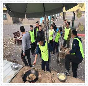 迎著朝陽,踏著秋爽,學員們集體登高遠望,離開城市的喧囂,感受爬山帶來的樂趣與寧靜,開啟了新一天的拓展。作為新時代的年輕干部,不僅要有專業(yè)的知識儲備,還要有健康的身體素質(zhì)。第二天的活動以戶外運動為主,包括“攀爬筆架山”、“競技攀巖”、“急速60秒”和“畢業(yè)墻”。中午,學員們開啟了野炊模式,離開我們的智能工具,以地為灶、以柴生火、其樂融融、返璞歸真。